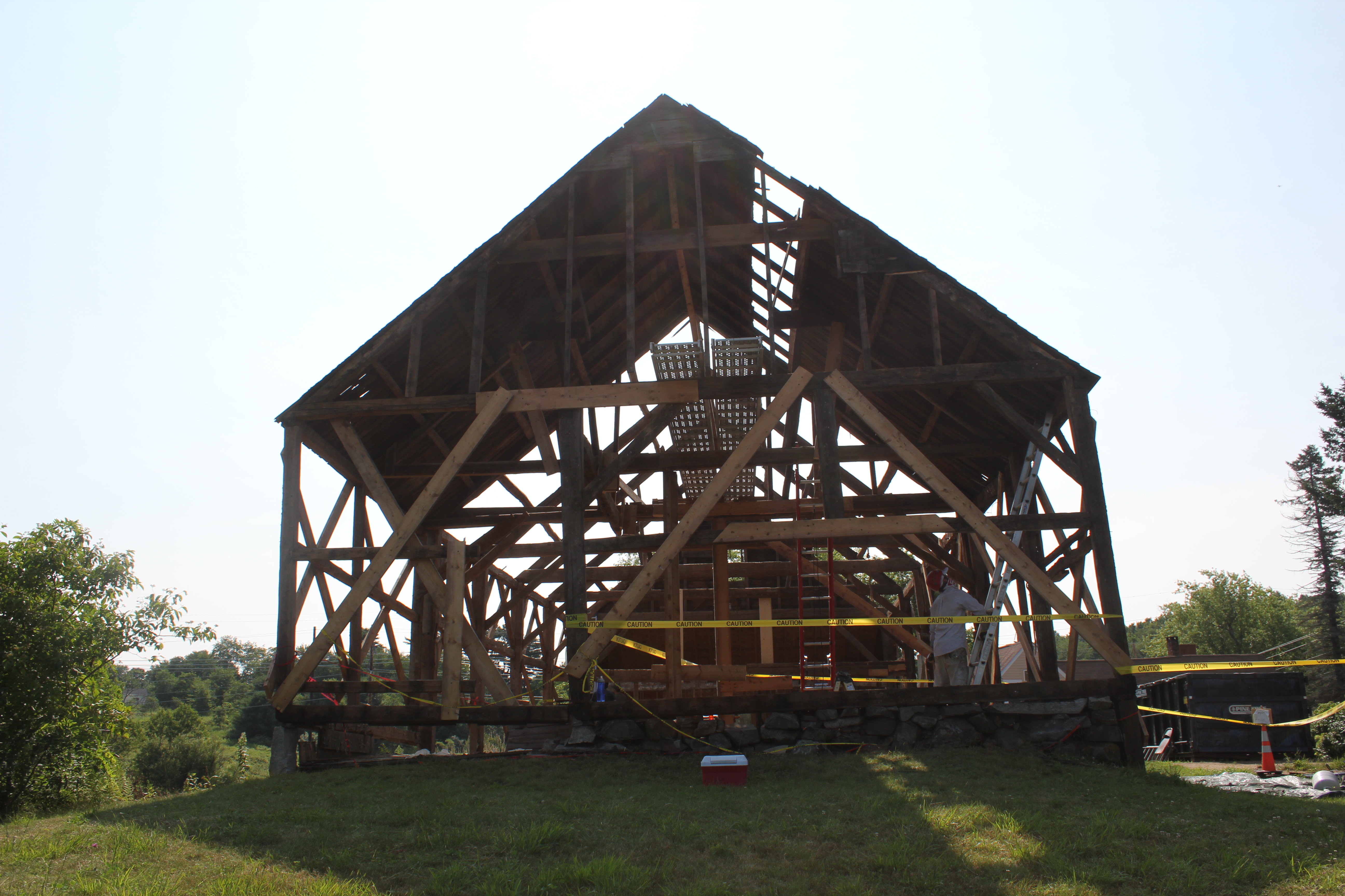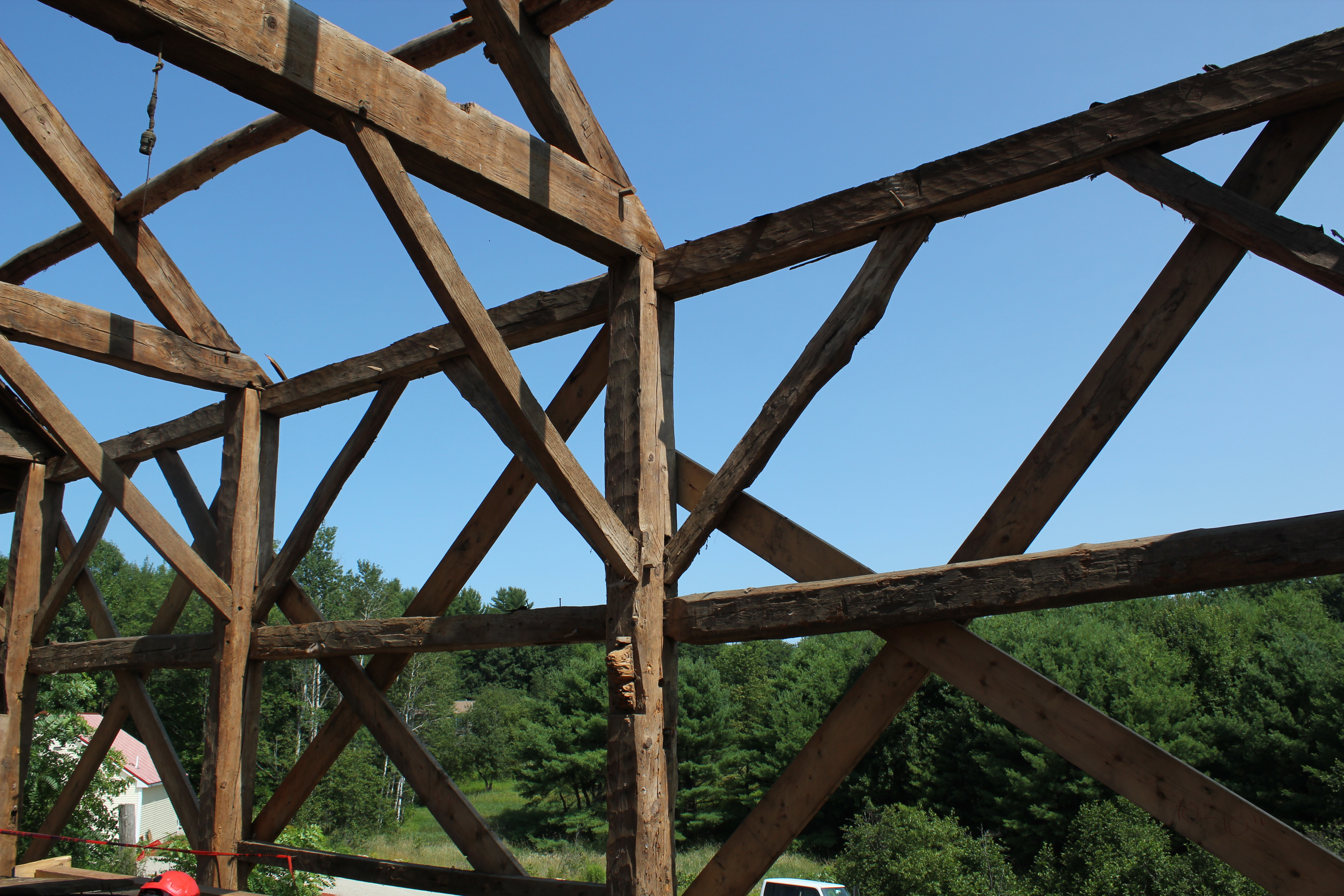The following photos of the finished Jennison Barn are by Josh McNally. Visit our Flickr page to see photos of the two frames before they were dismantled. Brock’s 18′ x 18′ frame is dismantled and looking for a good home.