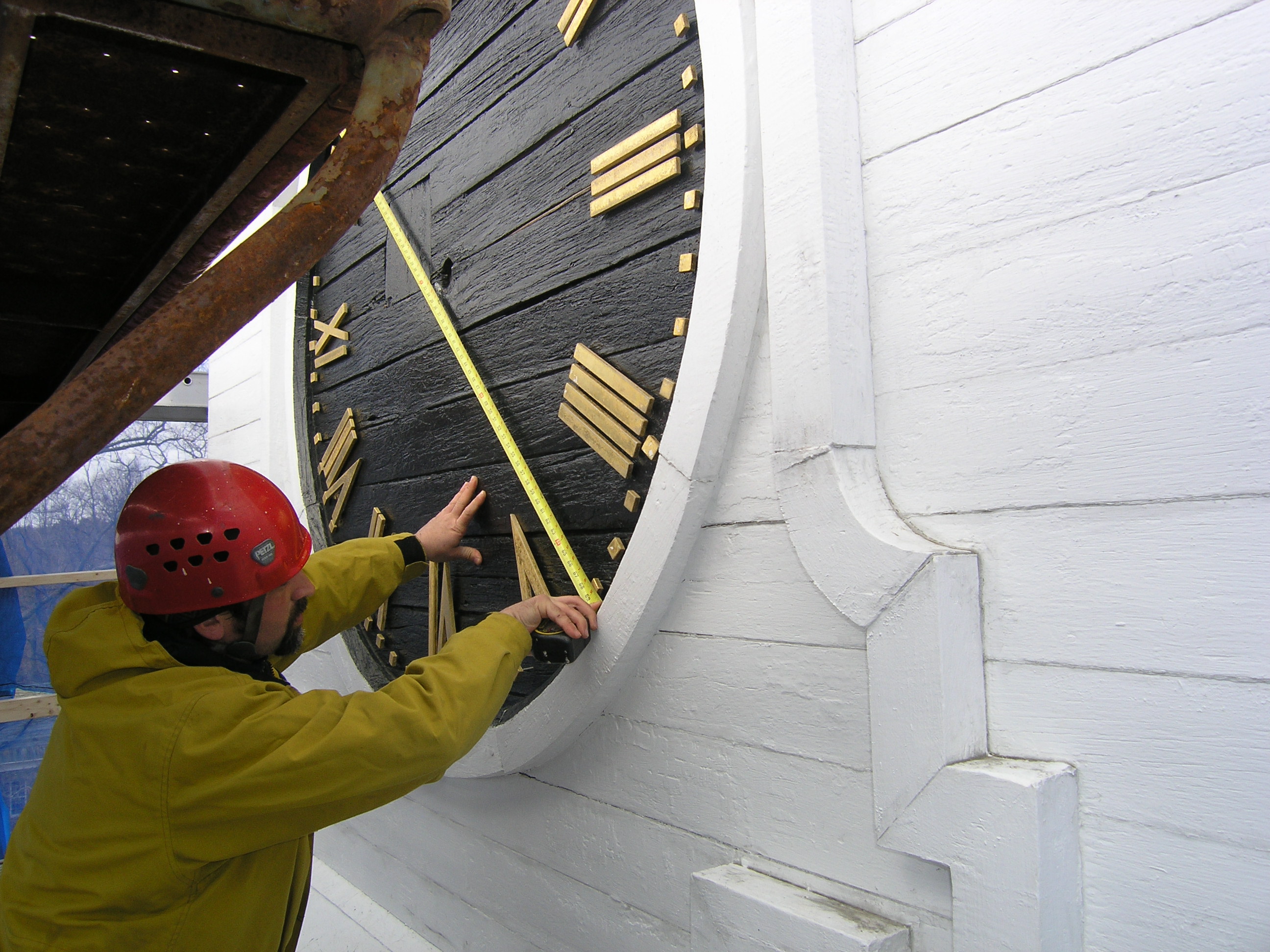 We have begun replacing the clock faces of the First Parish Congregational Church in York, Maine. Formed in 1636, the congregation is the oldest in Maine. The current building was built in 1747, and moved to its position, facing the road, in 1888.