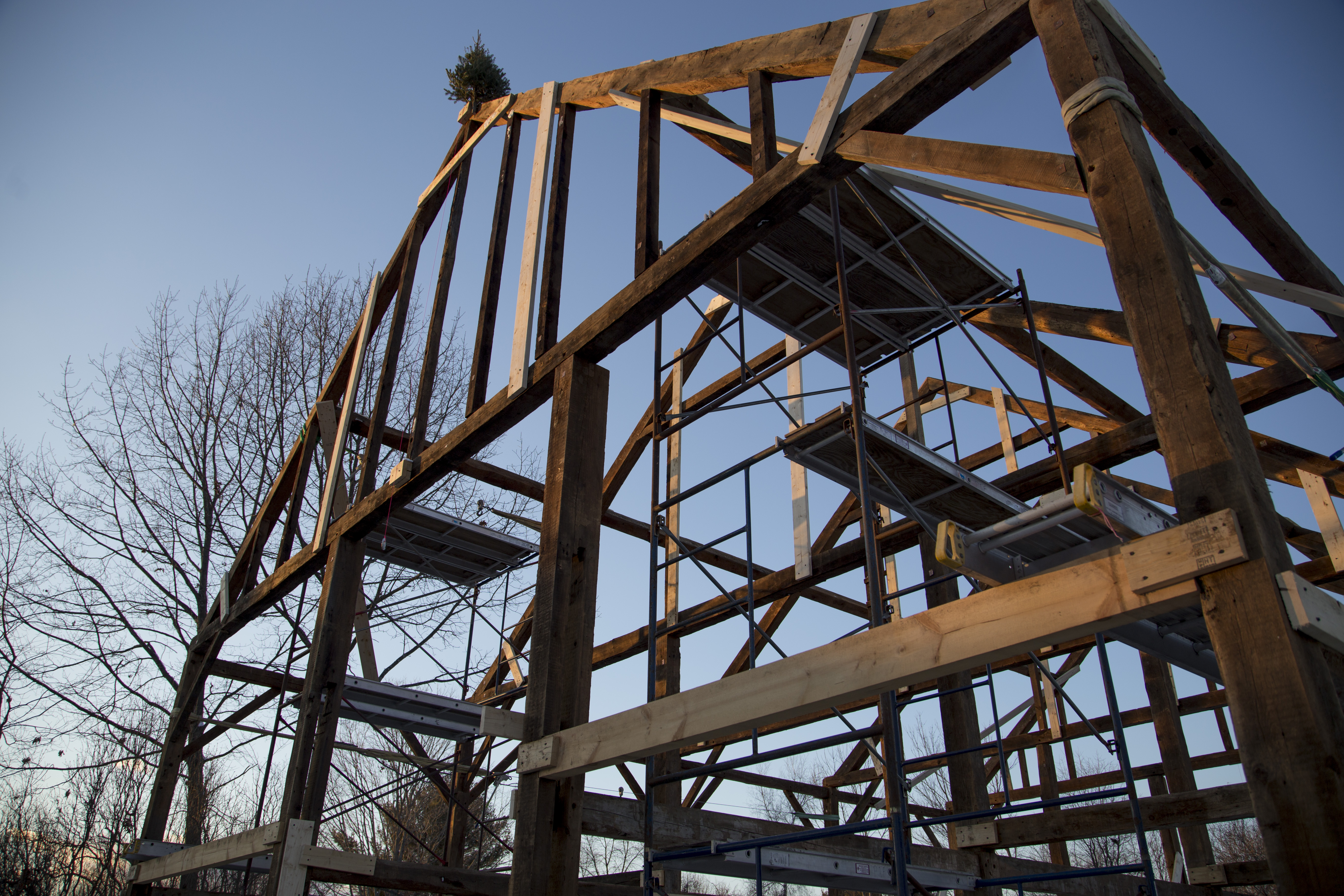 Our newest crew member, Joshua McNally, took a bunch more lovely photos of our crane day and of the Lord Barn after the roof was sheathed. For more, photos, explore our Flickr album.
